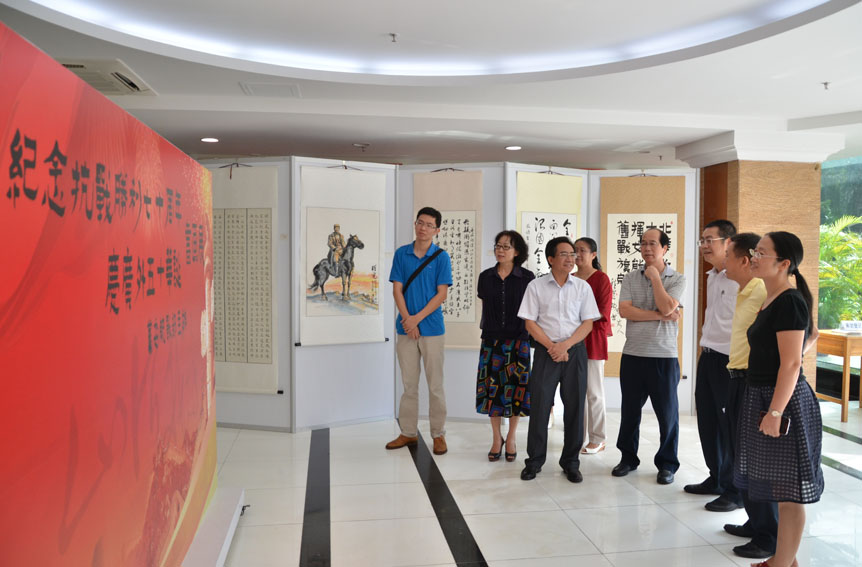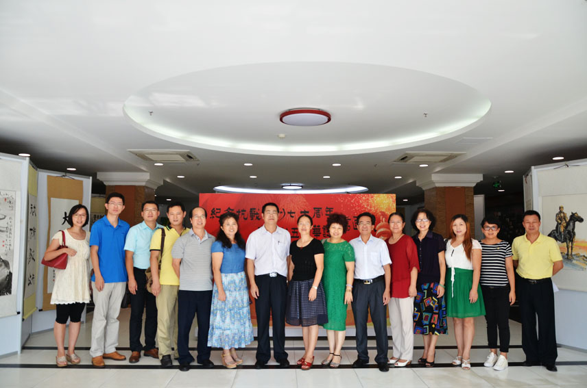 9月15日下午,广东省高等学校统一战线理论研究会理事会常务理事单位代表一行15人在理事会秘书长、广州中医药大学党委统战部部长裴立宁的带领下,参观了我校“纪念抗战胜利七十周年·庆广外五十华诞”书画展。校党委副书记卢景辉会见高校统战理论研究会一行。