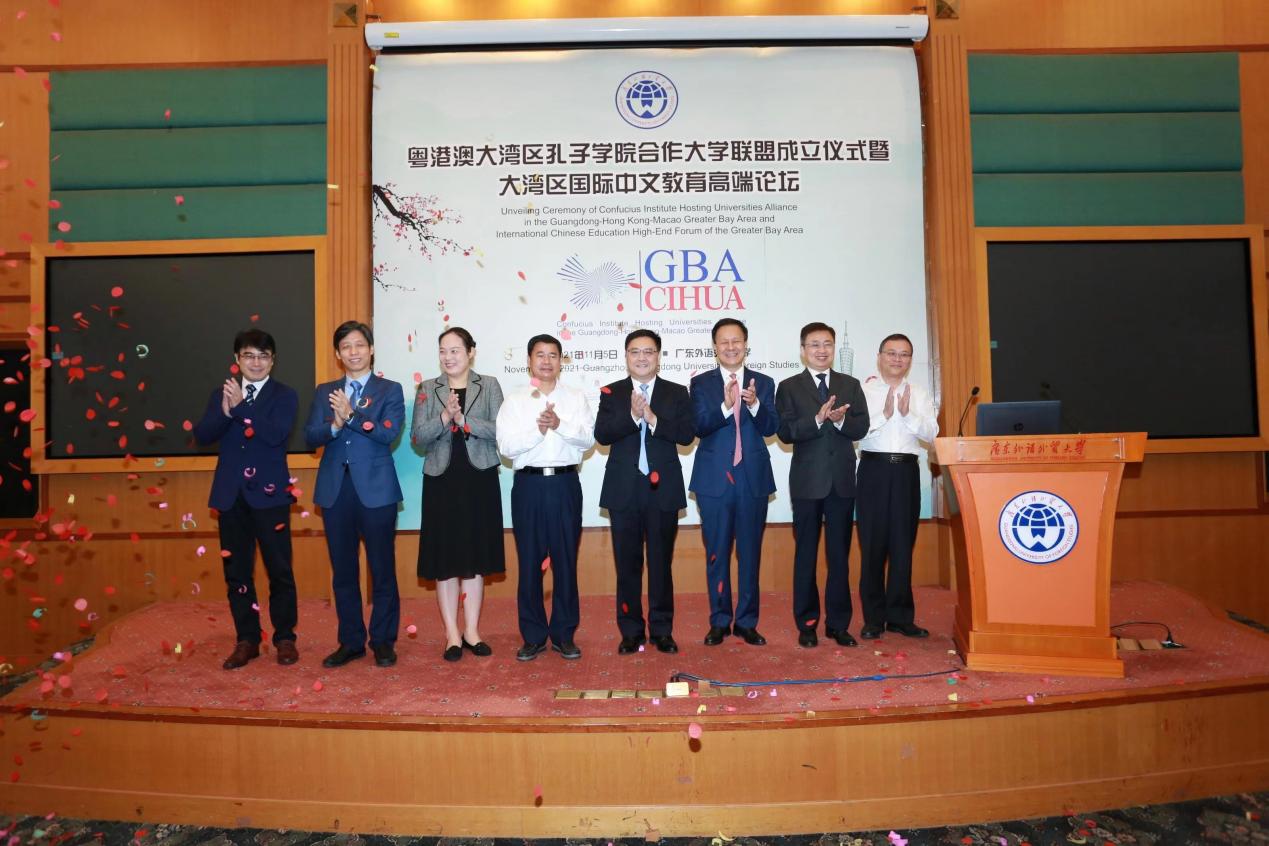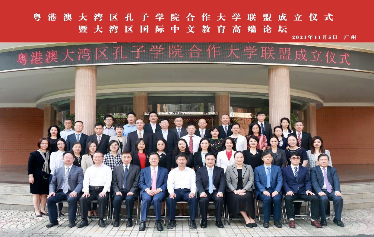 11月5日,我校通过线上线下相结合的方式,于北校区举办“粤港澳大湾区孔子学院合作大学联盟成立仪式暨大湾区国际中文教育高端论坛”。粤港澳大湾区孔子学院合作大学联盟是由我校首倡并与香港理工大学、澳门大学、中山大学、华南理工大学、暨南大学、华南师范大学、广州大学和岭南师范学院共同发起成立的区域性合作组织。联盟以“互通互鉴、合力共赢”为宗旨,依托粤港澳大湾区战略地位,旨在构建以粤港澳大湾区孔子学院中方合作院校为主体、其他单位为支撑的区域孔子学院联盟。