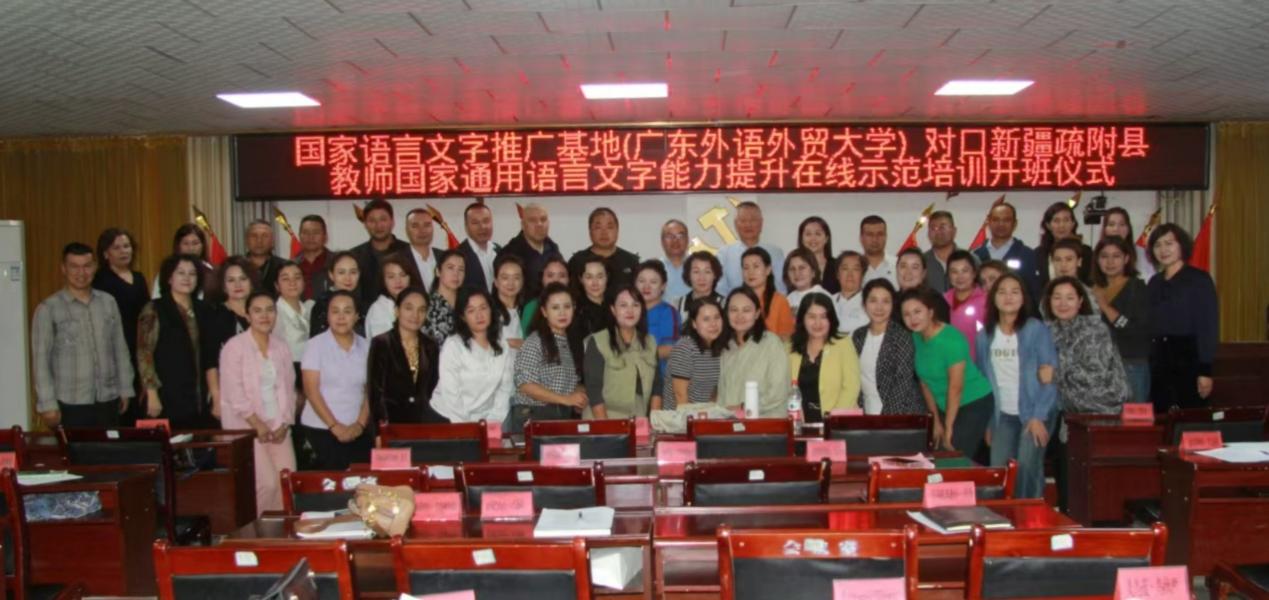 为加大国家通用语言文字推广力度,发挥国家语言文字推广基地辐射带动作用,切实提高新疆维吾尔自治区疏附县教师国家通用语言文字能力水平,9月18日上午,由教育部语言文字应用管理司主办,广东外语外贸大学国家语言文字推广基地承办,新疆疏附县教育局协办的“国家语言文字推广基地(广东外语外贸大学)对口新疆维吾尔自治区疏附县教师国家通用语言文字能力提升在线示范培训项目”开班仪式在线上线下同步举行。