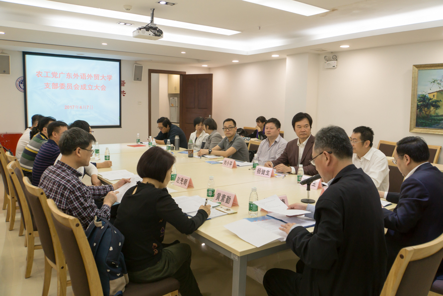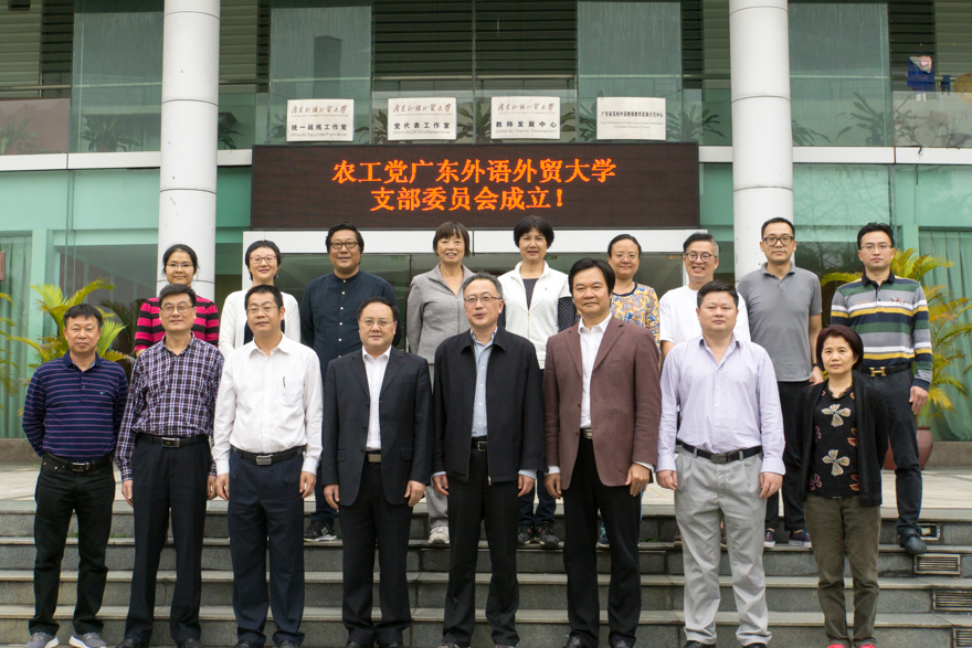 4月7日,农工党广东外语外贸大学支部委员会成立大会在我校统一战线工作室举行,农工党广东省委会专职副主委刘启德、校党委副书记石佑启、校党委统战部部长方迎生、农工党广东省委会组织处副处长黄素勤、农工党广州中医药大学基层委员会主委赵先明等和农工党广外支部全体党员参加会议。艺术学院音乐系主任杨健生、教育学院张倩、李悦教师当选为农工党广外支部委员会委员。