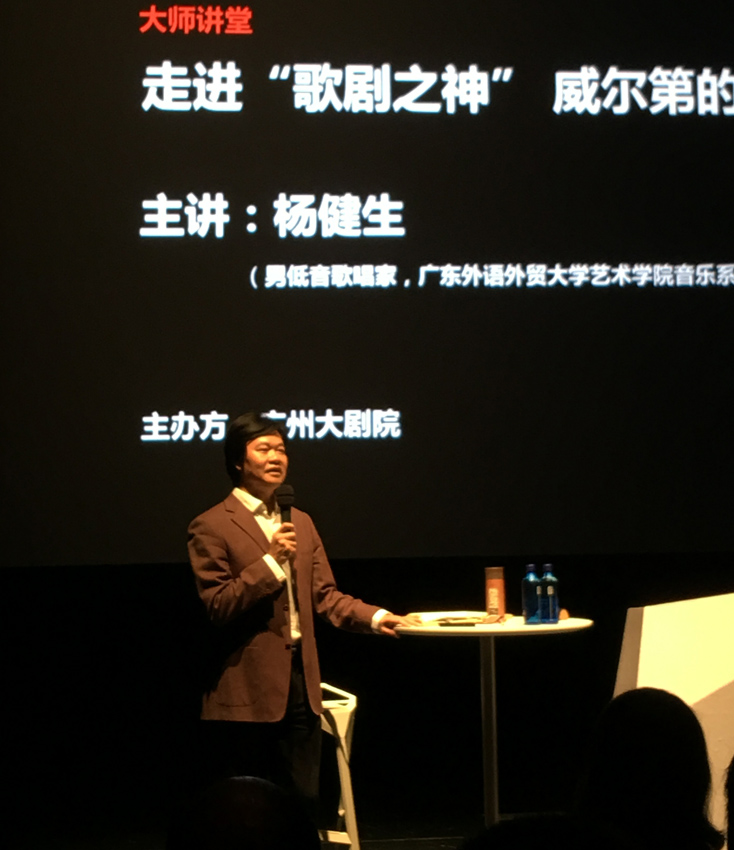 6月16日傍晚,广州全城狂风暴雨肆虐,却没有浇灭羊城音乐爱好者对歌剧艺术的热情,当晚19:30在广州大剧院实验剧场举行的《走进“歌剧之神”威尔第的音乐世界》讲座,全场座无虚席。广州大剧院“交一天时光给艺术•2017歌剧盛宴”邀请了男低音歌唱家、广东外语外贸大学艺术学院音乐系主任、农工党支部主委杨健生为广州观众解析威尔第的歌剧经典,感受威尔第歌剧的魅力与戏剧张力。