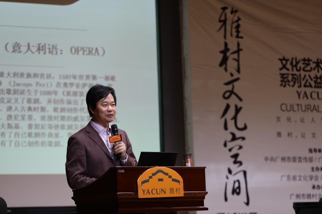 5月20日下午,由广东省文化学会主办的雅村文化空间第146期活动:“音乐皇冠上的“宝石”——歌剧”在广州图书馆负一层1号报告厅举行。男低音歌唱家、我校农工党支部主委、艺术学院音乐系主任杨健生担任主讲嘉宾。