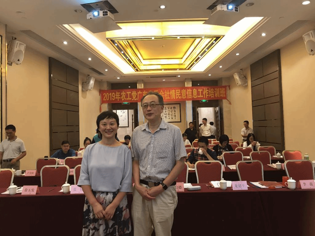 2019年10月24日至26日,中国农工民主党广东省委员会在江门举办2019年社情民意信息工作培训班,来自省直基层组织、各市委会、专委会、省委会机关各处室的信息员约60人参加培训。农工党省委会专职副主委刘启德、江门市委会主委周津明出席开班仪式并讲话,秘书长龙建平主持会议。我校农工党支部委员、省文化体育工作委员会委员张倩参加了此次培训学习活动。