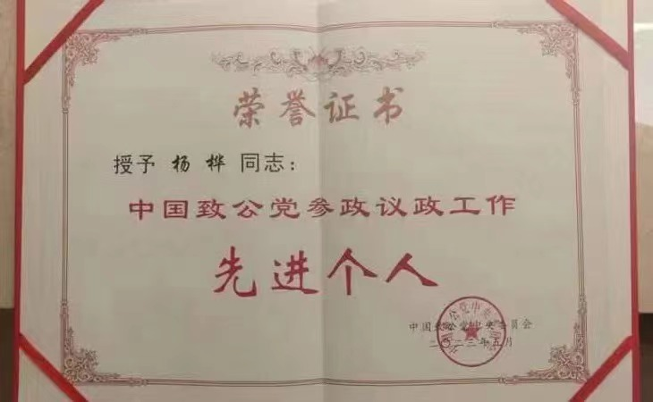 杨桦荣获中国致公党参政议政工作先进个人荣誉称号