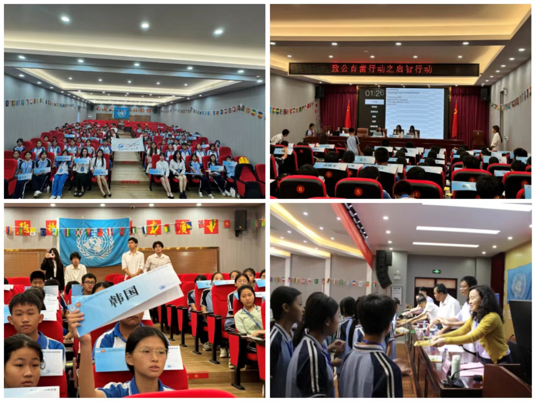 致公党广外总支部按照“致公育蕾行动”确立的“健魄、启智、赋能、育志”的活动目标,把模拟联合国活动和育蕾行动结合起来,在捷胜中学开展模拟联合国活动。为期4天的大会内容丰富、节奏紧凑,包括联合国基本知识讲解、外交礼仪知识讲解、国际新闻分享、中模规则教学、写作指导教学、中模流程模拟、立场文件及相关会议文件筹备等。大会完全按照联合国议事规则举行,分为三个会期。